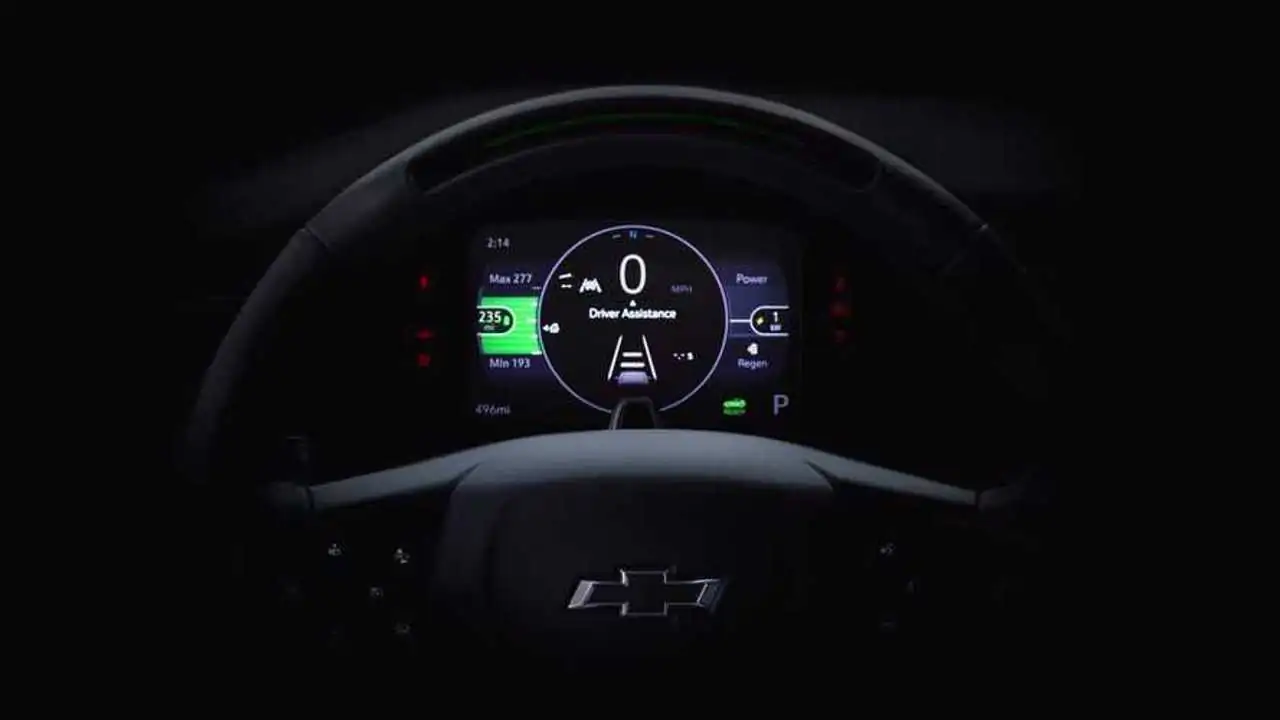 На видео демонстрируется рулевое колесо с кнопками управления автопилотом GM Super Cruise, который впервые появится на автомобиле марки Chevrolet, а также показатели на приборном дисплее. Последние и привлекли наше внимание, а точнее данные о запасе хода.